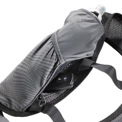Celá vesta je pomerne jednoduchá. Chrbát tvorí širšia časť, kde je umiestnené hlavné vrecko a medzi lopatkami sa sužuje, aby mal bežec úplnú voľnosť pohybu pliec počas behu. Cez ramená potom plynule prechádza do hrudnej časti, kde sú umiestnené 2 vrecká na softflasky, ktoré už sú súčasťou balenia. Na nich sú umiestnené 2 ďalšie vrecká, do ktorých pohodlne uložíte niekoľko gélov, tyčiniek, alebo napríklad rukavice. K tomuto všetkému nájdeme (pokiaľ budeme hľadať) ešte jedno skryté vrecko na zips - tu sa najviac hodí uložiť mobil, peniaze alebo iné cennosti. Nemusíte sa báť, že by vám kľúče poškrabali displej telefónu. V zadnom vrecku je otižto umiestnená šnúrka s plastovým putkom, na ktoré kľúče jednoducho zavesíte a nestratíte ich.