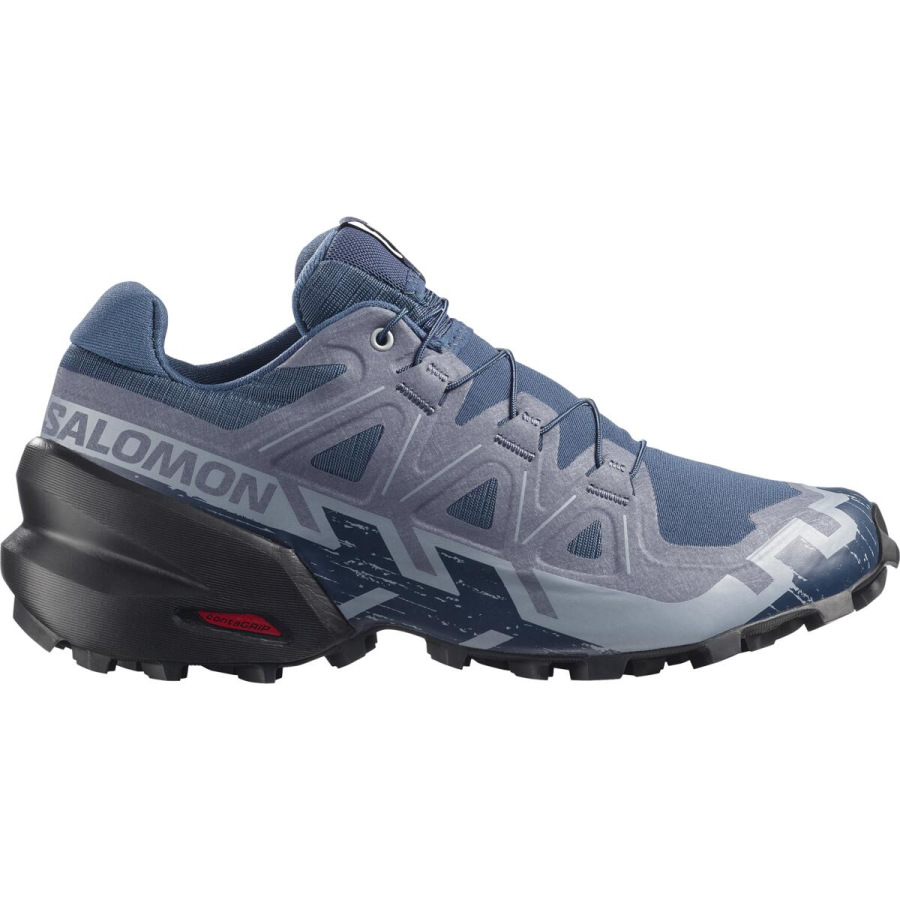 Trailová obuv SALOMON SPEEDCROSS 6 je určená na všetky prírodné povrchy. Chráni chodidlo a maximálne podporuje trakciu aj v najnáročnejších horských podmienkach. Jej najsilnejšou stránkou sú lesné cesty, chodníky, prípadne voľný lesný terén od mierne zvlneného profilu až po tie najstrmšie stúpania, či klesania. Podrážka CONTAGRIP® v prevedení SPEEDCROSS má špeciálne vysokú trakciu práve v strmých svahoch. Tá sa samozrejme prejavuje aj pri behu v mokrej tráve, či blate, kde aj pri tých najťažších podmienkach poskytuje prekvapivo istý odraz a dopad.